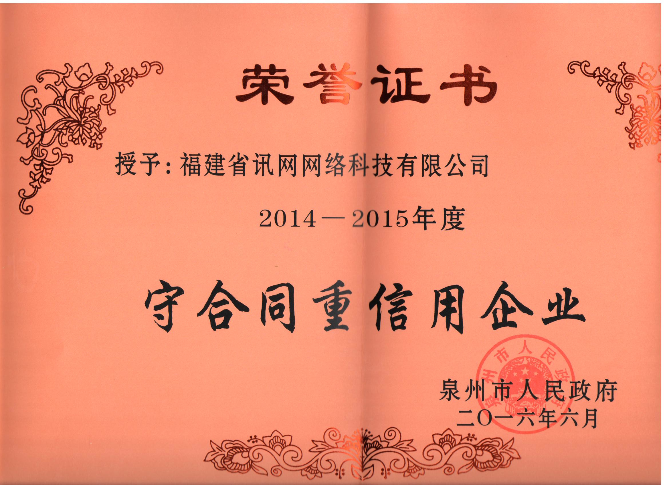 近日,泉州市人民政府公布2014-2015年度 “守合同重信用企業(yè)”(以下簡(jiǎn)稱(chēng)“守重企業(yè)”)名單,福建訊網(wǎng)網(wǎng)絡(luò)科技股份有限公司位列其中,這是對(duì)訊網(wǎng)網(wǎng)絡(luò)誠(chéng)信經(jīng)營(yíng)行為的肯定。