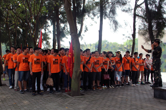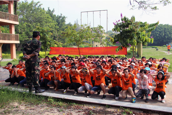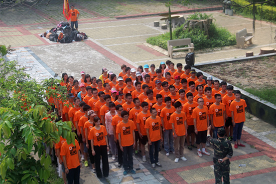 當天抵達大嶝島后,整個大團隊被分成兩個連隊:“尖刀連”和“英雄連”,并分成了八個小隊。首當其沖迎接所有員工的就是教官嚴格的軍訓。一個口令,一個動作,都必須執(zhí)行到位。一開始團隊因為不適應還帶著點懶懶散散,教官不留情面,直接處罰,命令所有人抱頭蹲地,原地蹬腿。接著又因為集合拖拉,全員罰做俯臥撐。經過一番雕琢后,我們的大團隊拿出了應有的紀律和氣勢,走入了下一個環(huán)節(jié)。