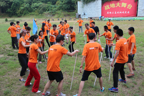 “不倒森林”是個同時考驗了團隊默契信任與個人心態(tài)反應的項目。每個小組所有成員圍成一圈,一人用手心撐住一根桿子,同時放掉并接住右手邊的隊友放下的桿子,并循環(huán)一圈。項目練習時,各個小組都善于觀察,分析問題,找出了一種符合自己團隊節(jié)奏的方法。而項目結束后,各個小組還派出了一個代表人發(fā)言,如何從這個項目中吸取經驗總結,并應用到實際的工作中去。