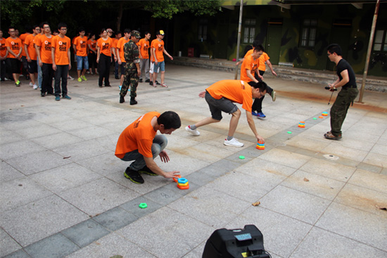 稍事休息后,拓展項目就算開始啦!由于訊網(wǎng)科技的四個成員團隊彼此之間較少接觸,所以第一個環(huán)節(jié)就是團隊建設。小隊之間的成員自我介紹,并推選出隊長和隊花,隊長是血氣方剛的大老爺們,隊花就是我們貌美如花的女副隊長們!而教官召集了8個隊長和隊花,分配了第一個項目——團隊展示:用8分鐘的時間想出隊名、口號、隊歌、LOGO,而且要進行至少有三人處于浮空狀態(tài)的展示亮相!這讓每個小隊都忙開了花,但訊網(wǎng)科技的小伙伴們都有很有才,沒一會兒,大家就想好了一切。于是,8個小隊:狼牙隊、猛龍隊、小蘋果隊、蘋果隊、狂風隊、齊心隊、戰(zhàn)神隊、八路隊一一亮相!