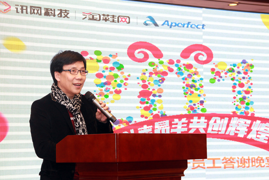 晚宴在溫馨喜慶熱氛圍中拉開大幕,訊網科技董事長王冬竹率先發言,2014年傳統制造業正在經歷著一次轉型及其所帶來了陣痛。訊網科技作為一家服務于傳統制造業的電子商務企業,也同步經歷著這一切。今年,訊網將在轉型的陣痛中努力將自身打造為更強大的企業。大訊網集體下訊網科技、淘鞋網等平臺將進一步相互融合,以全新的面貌,共同凝聚成一股強大的力量,共同創造大訊網的輝煌明天。