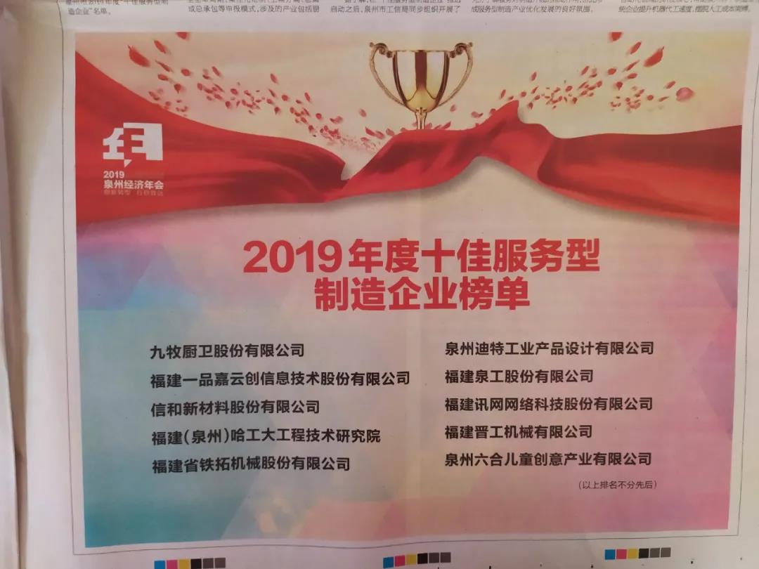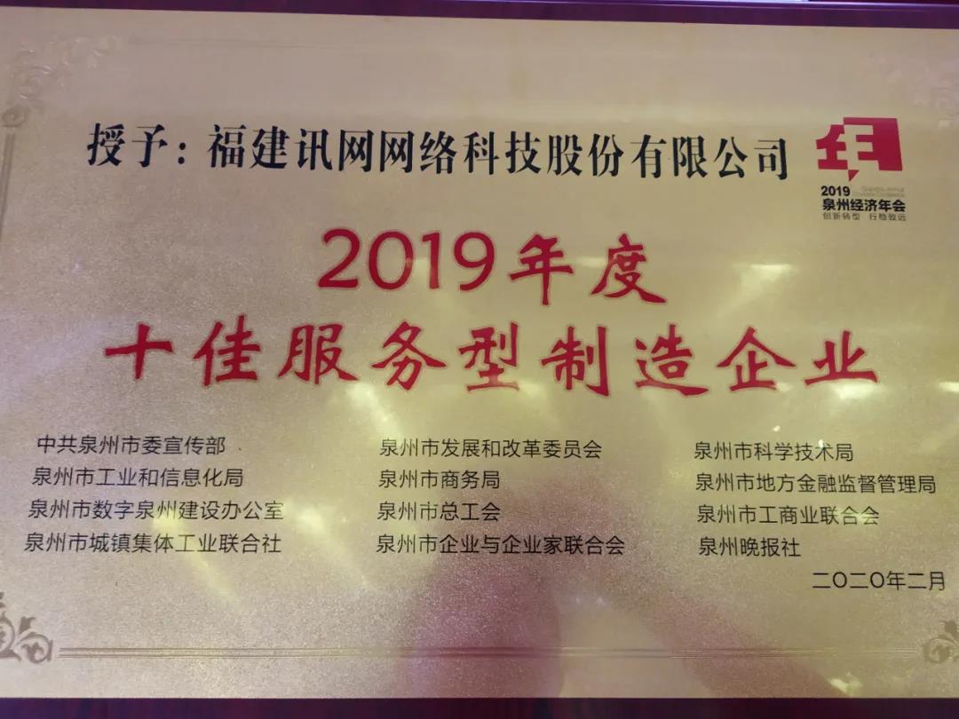 在2019泉州經(jīng)濟年會上,福建訊網(wǎng)網(wǎng)絡(luò)科技股份有限公司(簡稱“訊網(wǎng)網(wǎng)絡(luò)”)榮獲“2019年度十佳服務(wù)型制造企業(yè)”。