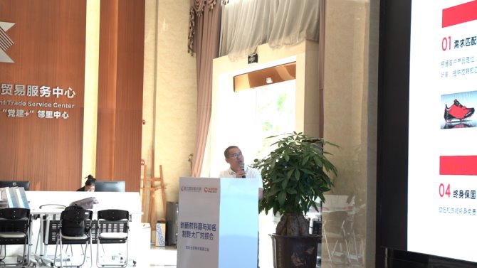 環(huán)球鞋網(wǎng)代表主辦方為大家一一介紹了本次對(duì)接會(huì)的創(chuàng)新材料商:康邦拓、佳南、鍇越、扭嗒、亞塑、華宇、中盛、炫龍、恒得利、泉榮。