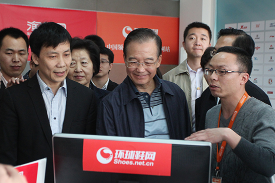 中共中央政治局常委、國務(wù)院總理溫家寶視察環(huán)球鞋網(wǎng)、淘鞋網(wǎng)